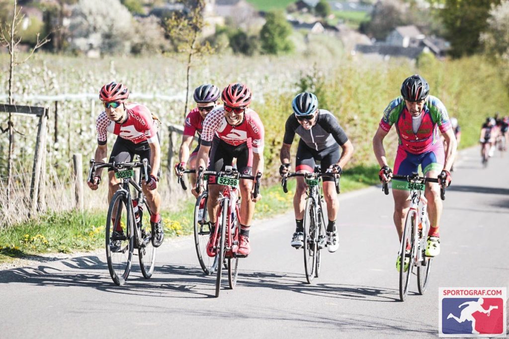 Para nosotros la clave es rodar y ver pasar kilómetros y muros cortos, suaves, y algunos casi que no te das cuentas cuando los estás subiendo. Y por el camino dos avituallamientos para recargar pilas, algunos piques y un detalle curioso, pasamos en bici por la misma puerta del aeropuerto de Maastricht, que, evidentemente, tiene carril bici para llegar hasta él. Otro mundo la verdad, como los paisajes del Fromberg, el muro que se pasa dos veces y con una de las fotos más bonitas de la marcha en la cima. Después la trampa del Koulenbergeweg y otro avituallamiento antes de pasar por el Hotel y vestirse de verano total. 25 grados, 130 kilómetros por delante, verano total en Holanda.