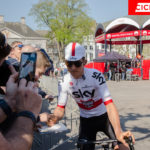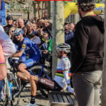 Y el domingo después de desayunar camino a Maastricht para ver la salida. Autobuses abiertos, 43 equipos y 283 ciclistas con sus bicicletas esperando a la salida. Tantos, sí, 25 equipos masculinos y 18 femeninos. Una auténtica feria del ciclismo para disfrutar. Allí cada uno elige sus ídolos para las fotos. Valverde, Cortina, Alaphilippe, Gilbert, Van der Poel, Sagan, Van der Breggen, Van Vleuten, Marian Vos… todos disponibles antes de pasar por la zona de salida en Maastricht, una de las ciudades más desconocidas de Europa y con un centro histórico digno de pasear, aunque no haya Amstel Gold Race.