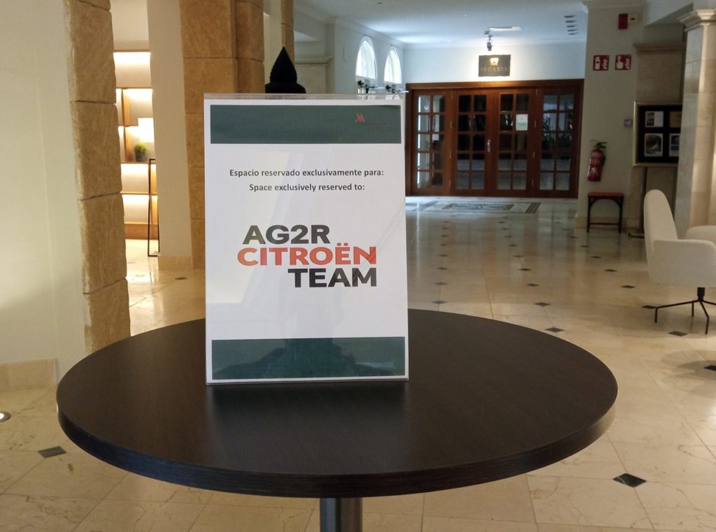 Cada uno de los equipos completos (AG2R – Citroen y Trek – Segafredo, también con la división femenina) ocupaba un ala diferente del hotel, tenía comedores diferentes y salas para guardar las bicis y de reuniones de los directores diferentes. Incluso en el comedor no había buffet, sino que a cada miembro del equipo (unos 30 ciclistas y otros tantos auxiliares y técnicos) los servían los camareros del hotel.