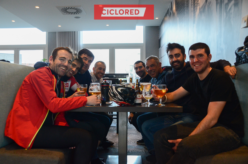 Qubus, fotos, masajes, paso por la plaza de Oudenaarde para ver la presentación de los equipos femeninos y retorno al Hotel Leopold. Cervezas para celebrarlo mientras van llegando todos. Historias, anécdotas, momentos, sensaciones. Horas de charla ciclista con una cerveza flamenca. Pocas cosas pueden haber mejores para un grupo al que la bicicleta es su pasión.