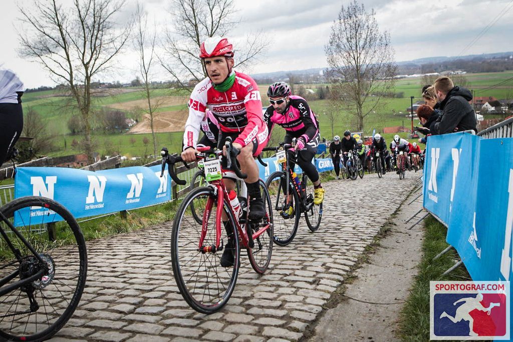 Primer contacto con los adoquines en Eikenberg, para abajo y hacia arriba. La sensación, todo lo que se nos había olvidado en un año se recuerda en 10 segundos. Por el centro, sin escapatorias. Solo Pedro y Luis son veteranos en este terreno, para Alberto, Jaime, Manuel, Marc y Vicente son debutantes. Toma de contacto positiva y a aumentar un punto de dureza. Koppenberg. Impresiona con solo llegar. Adoquines rotos. Barro en la derecha. Prueba de fuego para adaptarse al terreno. Giro a la derecha y en buscar del Kruisberg. Misticismo y detalle. Justo al acabar giro a la derecha y hacia Hotond. Insignificante con 30 kilómetros en las piernas, eterno para Nibali el domingo cuando no pudo seguir la rueda de Teprstra.
